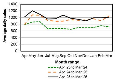 After 3 full weeks, average daily produce sales were $1007, which was 2.2% lower than in the same time period last year. | ||||||||||